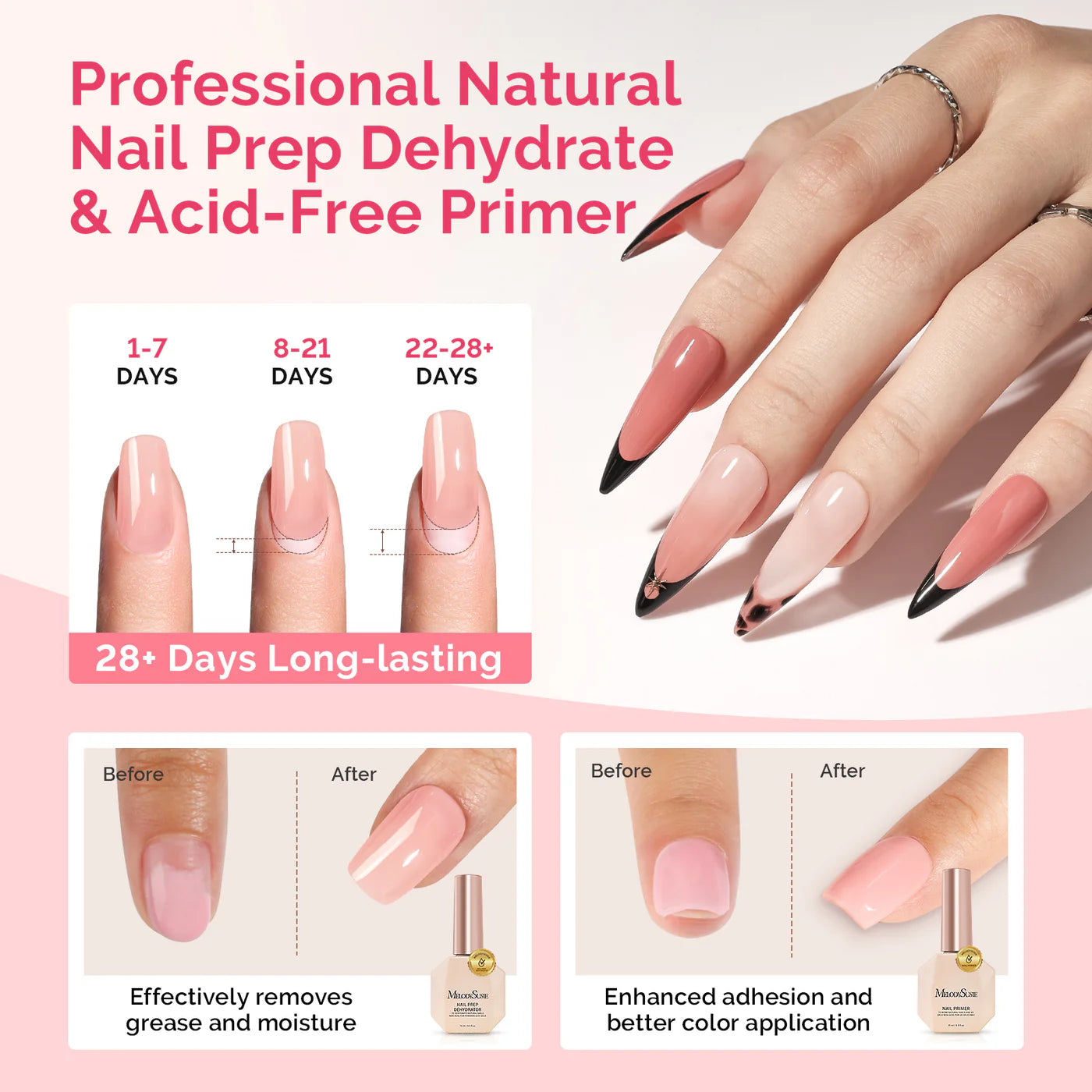 - LASTS 30 DAYS: Nail dehydrator effectively removes moisture and oil from the nail surface for a smoother finish, reduces the formation of air bubbles during application and ensures an even application, and the acid-free primer binds the gel nail polish while enhancing adhesion and reducing peeling and flaking.
